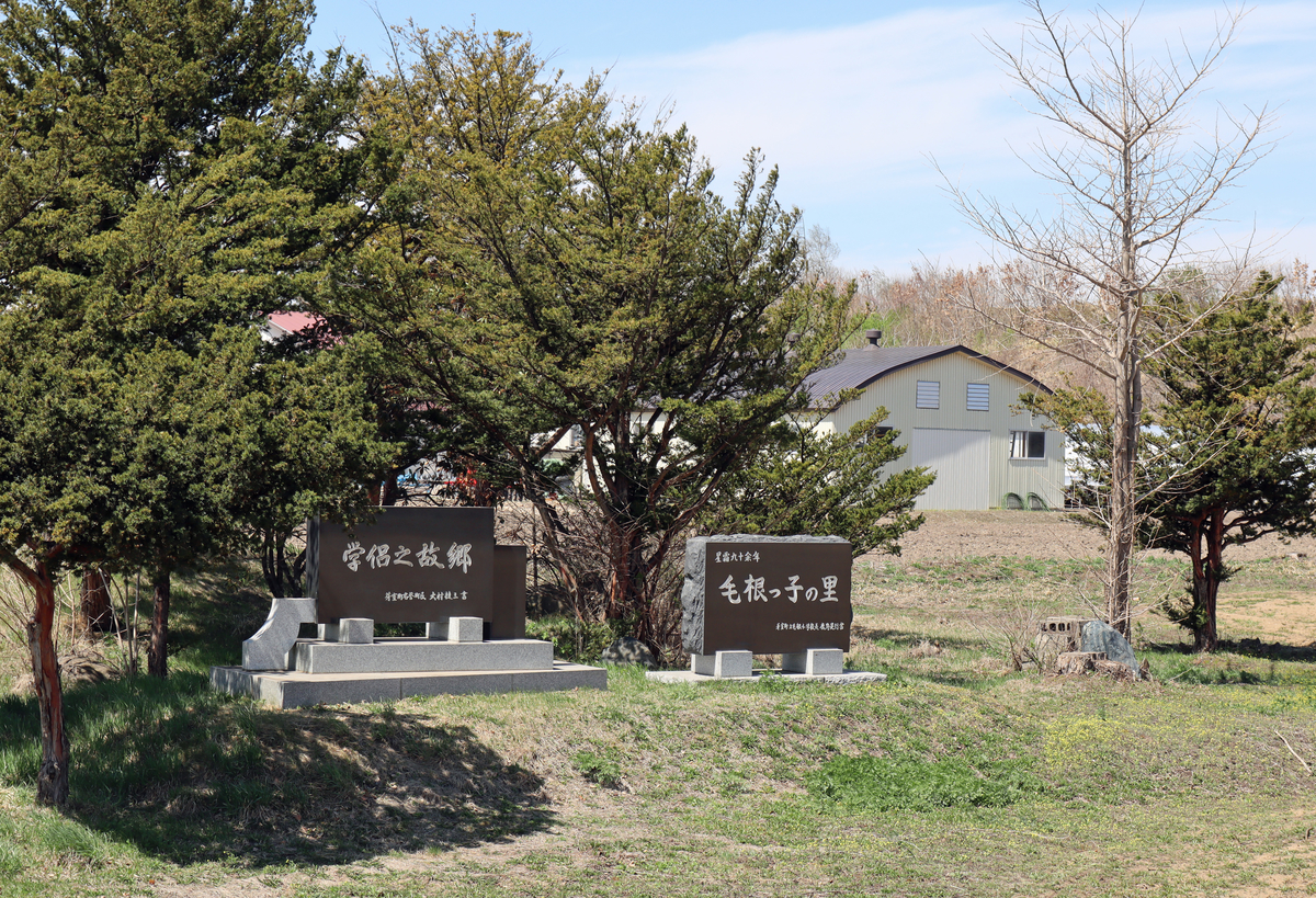 グランドの西側に閉校の碑があります。1899年ケネ簡易教育所として開校、1905年毛根尋常小学校に。1995年芽室西小学校と統合しました。