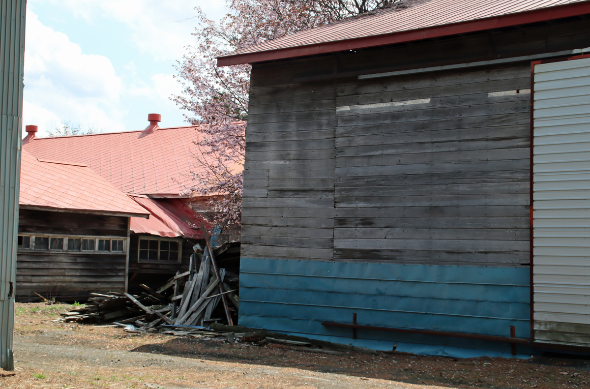 道東自動車道の少し北です。現在酪農家の敷地となっているようです。6号沿いに校舎がありました。周りが木や塀で囲まれており、観察しづらいです。6号側の塀の間から。校舎らしくも見えます。
